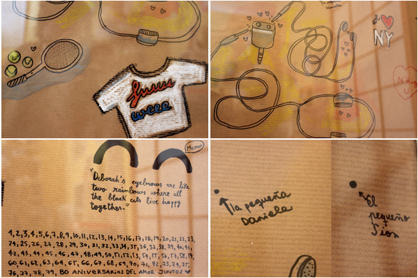 a) Dibujamos un montón de cosas fruto de nuestro amor, cosas nuestras, que simbolizan nuestra laaaaarga relación :)